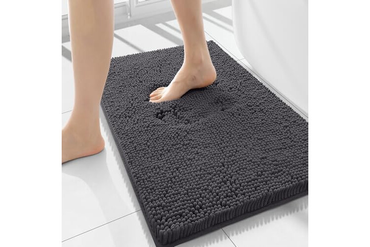 Smiry Luxury Chenille Bathroom Rugs 44x24, Extra Soft and Absorbent Shaggy Bath Mat, Machine Washable, Non-Slip Plush Carpet Runner for Tub, Shower, and Floor, Home Decor Accessories, Charcoal Grey