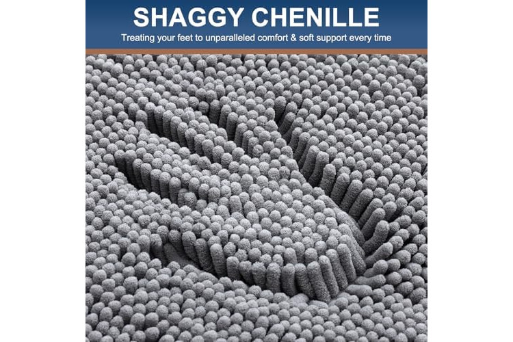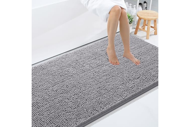 Smiry Luxury Chenille Bathroom Rugs 59x35, Extra Soft and Absorbent Shaggy Bath Mat, Machine Washable, Non-Slip Plush Carpet Runner for Tub, Shower, and Floor, Home Decor Accessories, Grey