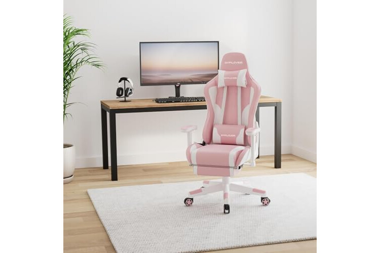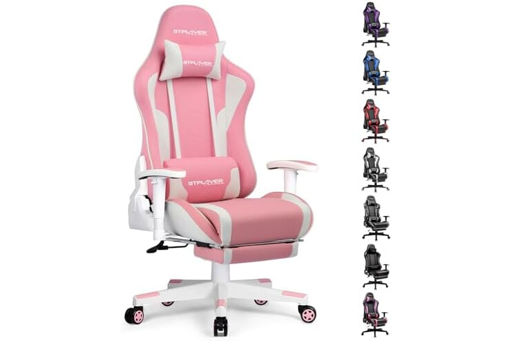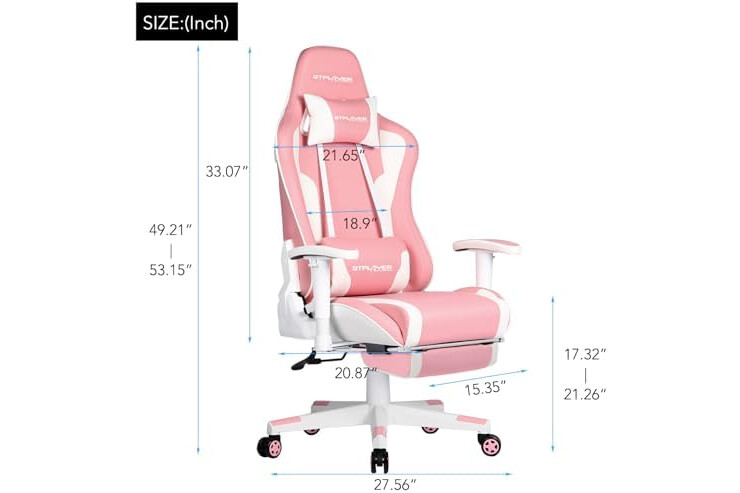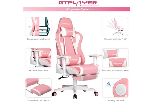 GTPLAYER Gaming Chair with Footrest Speakers Video Game Chair Bluetooth Music Heavy Duty Ergonomic Computer Office Desk Chair (Pink)