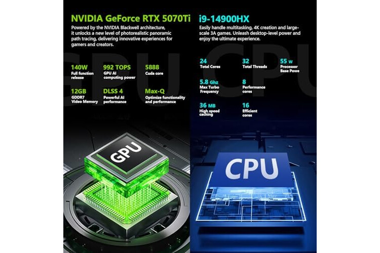 [Unstoppable Power: Blazing-Fast Speed & Graphics] 14th Gen Core i9-14900HX ( 24 Cores, 32 Threads, 36MB L3 Cache, 1.60GHz base frequency, up to 5.8 GHz max turbo frequency), with GeForce RTX 5070 Ti.
