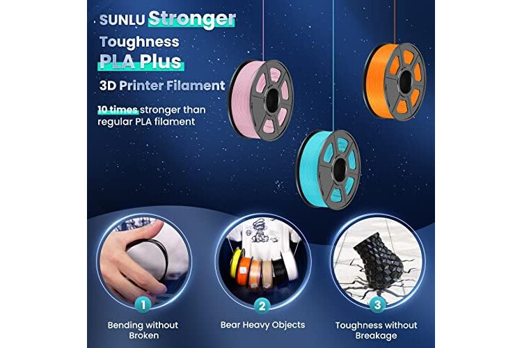 【SUNLU PLA PLUS 3D Filament】- PLA PLUS filament is 3 times stronger than PLA Filament, the color is brighter, it has many advantages, Clog/Bubble/Tangle/Warping/Stringing free, easy to Use, better layer adhesion.