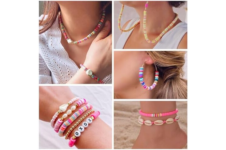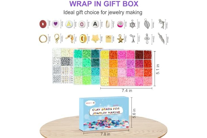 PREMIUM QUALITY, SAFE TO USE - beads are made of polymer clay, strong plasticity, and durability. the diameter of clay heishi beads is 6mm with a 2mm hole and thickness is 1mm. the clay beads for bracelets are lightweight, not easy ro fade, comfortable to wear and waterproof when you wear it at the beach or pool. all materials provided are completely safe and kid-friendly for ages 6