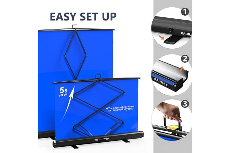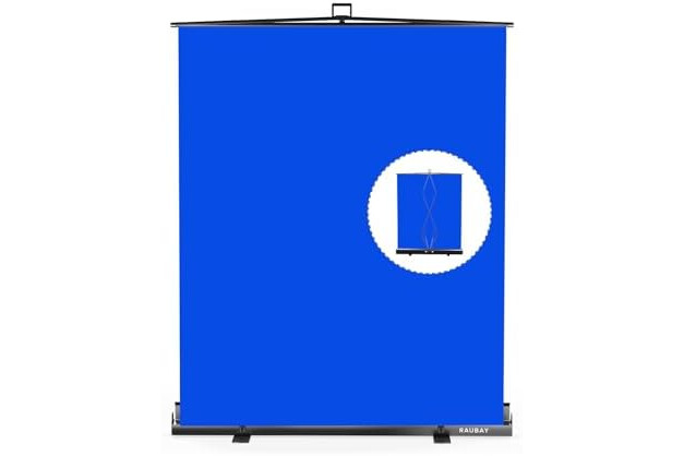 【Easy Set Up】 RAUBAY 59.8 x 82.7in Collapsible Blue Screen Backdrop Portable Retractable Chroma Key Panel Photo Background with Stand for Video Conference, Photographic Studio, Streaming