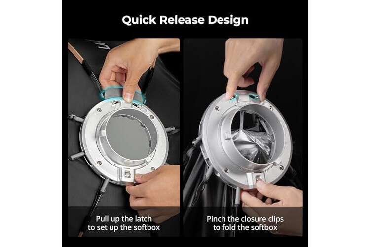 Quick Release Design - The Bowen mount softbox LA-O90 utilized a quick-release design, enabling effortless installation and disassembly with just a single click, thus optimizing the user experience for enhanced usability. Different from traditional quick-release systems, this collapsible softbox allows for more fast disassembly and assembly, with a more compact storage footprint.