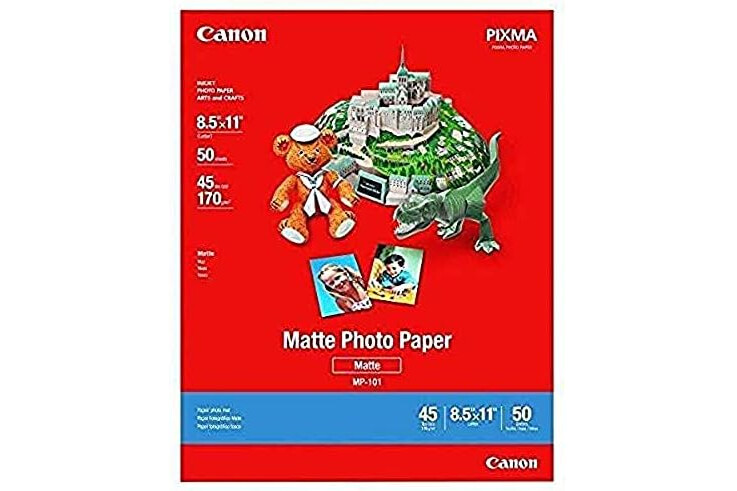 50 sheets of Canon Photo Paper Plus with a matte finish for vibrant color photos