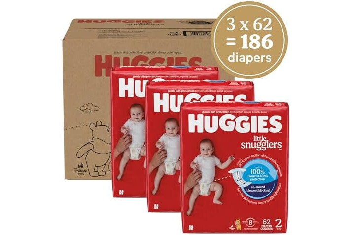 Huggies Size 2 Diapers, Little Snugglers Baby Diapers, Size 2 (12-18 lbs), 186 Count (3 Packs of 62), Packaging May Vary