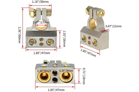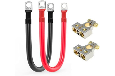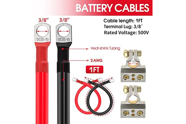 2 AWG Battery Cable 2 Gauge Battery Inverter Cables with 3/8 in Lugs Pure Copper Power Inverter Wire Set for Solar Marine Boat RV Car Motorcycle (1FT, with 0/2/4/6/8 AWG Connectors)