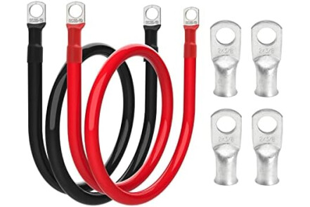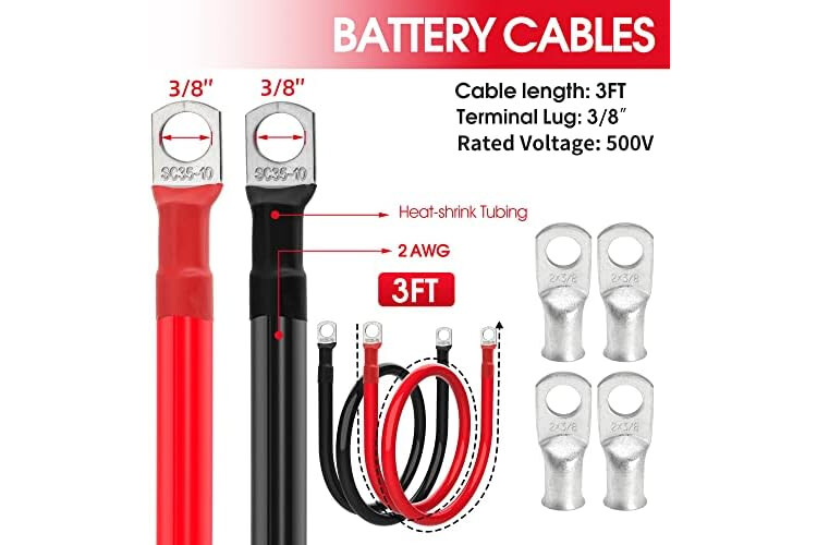 2 AWG Battery Cable 2 Gauge Battery Inverter Cables with 3/8 in Lugs Pure Copper Power Inverter Wire Set for Solar Marine Boat RV Car Motorcycle (3FT, with 2 AWG 3/8" Lugs)