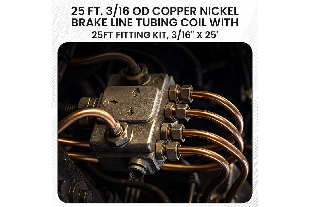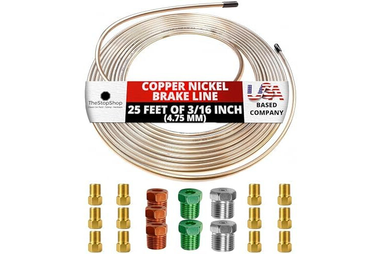 The Stop Shop 25 Feet of 3/16 Inch (4.75 mm) Copper Nickel Brake Line (.028" Wall Thickness) with Fittings
