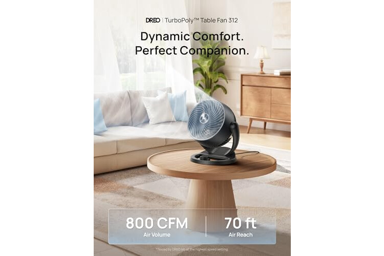 Powerful air Circulation for your entire room: Dreo's WingBoost system combines deep-pitched blades and aerodynamic design to propel air as far as 70 ft, helping your desk fan to circulate strong air throughout your whole room. Product Dimensions: 9''D*11''W*12''H