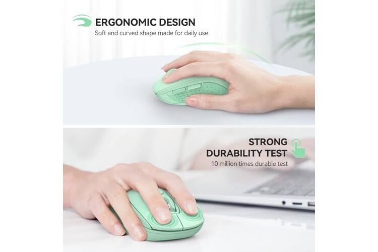 Ergonomic Build: Contoured design for comfort. 10 million times click durability. Compact size for travel. Computer mouse wireless is not ideal for large hands.