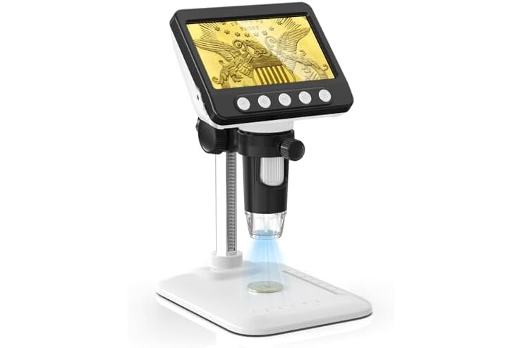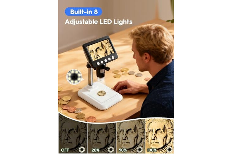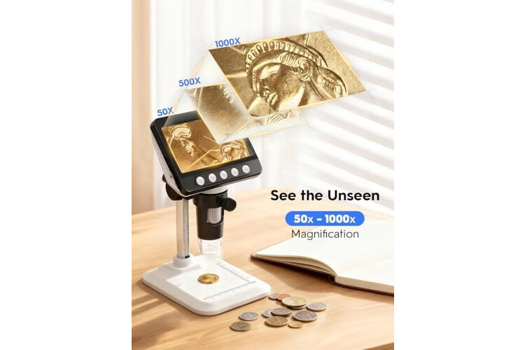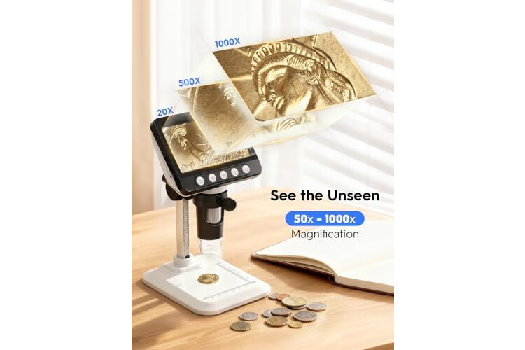 Coin Microscope for Error Coins, 4.3 inches 1080P LCD Digital Microscope, 50x-1000x Magnifier with 8 Adjustable LED Lights, PC View, Compatible with MacOS Windows for Adults Kids