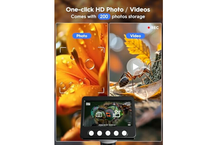 4.3" IPS Display: Featuring 1080P HD digital imaging, the high-quality IPS screen delivers sharp, real-time images and clear videos with accurate colors and a wide viewing angle, even under full lighting. The 8 adjustable LED lights further enhance visibility. The large screen design improves ergonomics and reduces eye and neck strain compared to traditional eyepieces.