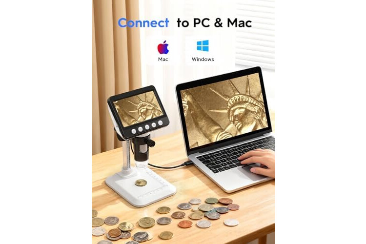 Microscope to PC Larger View: Our coin magnifier is compatible with both Windows and MacOS systems, so you can try it out on different running systems. Allows taking photos and videos. (Comes with 200 photo storage space)