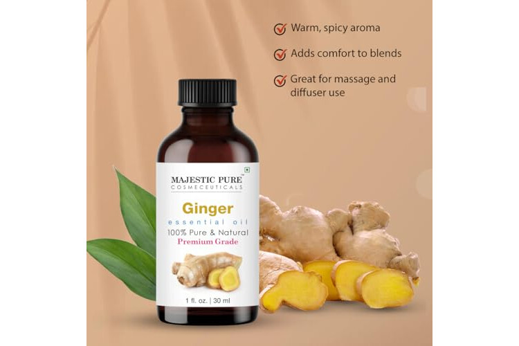 Majestic Pure Ginger Essential Oil with Glass Dropper - 1 Fl Oz - 100% Pure and Natural Ginger Oil - Premium Grade Essential Oils for Diffuser, Aromatherapy, Soap and Candle Making