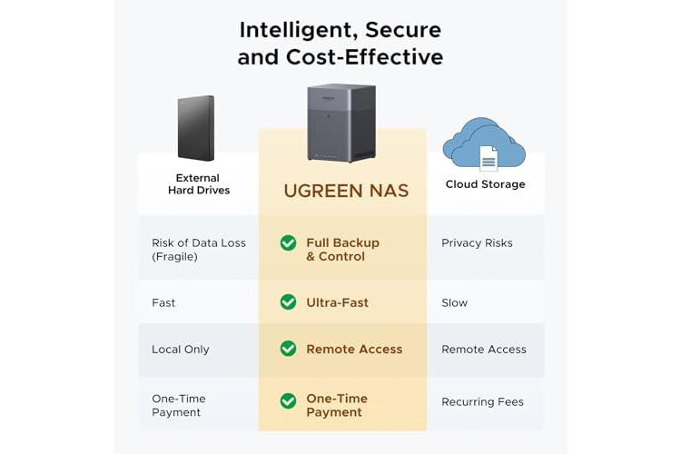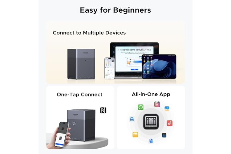 User-Friendly App & Easy to Use: Connect quickly via NFC, set up simply and share files fast on Windows, macOS, Android, iOS, web browsers, and smart TVs. You can access data remotely from any of your mixed devices. What's more, UGREEN NAS enclosure comes with beginner-friendly user manual and video instructions to ensure you can easily take full advantage of its features.