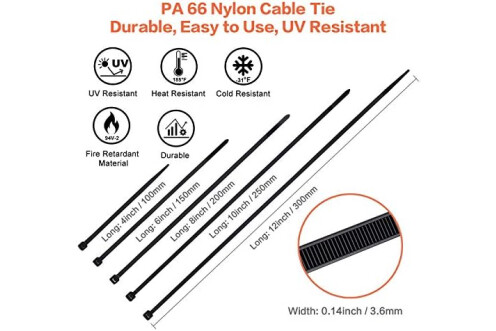 High-Quality Plastic Ties: Made of industrial strength nylon 6/6 fire resistant material, the cable straps are flexible to be used in temperatures ranges from -31℉ to +185℉ (-35℃ to +85℃), uv resistant for outdoor