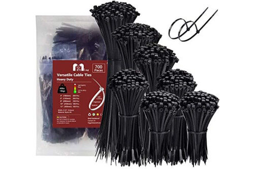 Black Zip ties Assortment: Pack of 700 small zip ties 4/6/8/10/12 inch premium cable ties assorted (4inch 200pcs, 6inch 200pcs, 8inch 100pcs,10inch 100pcs,12inch 100pcs)