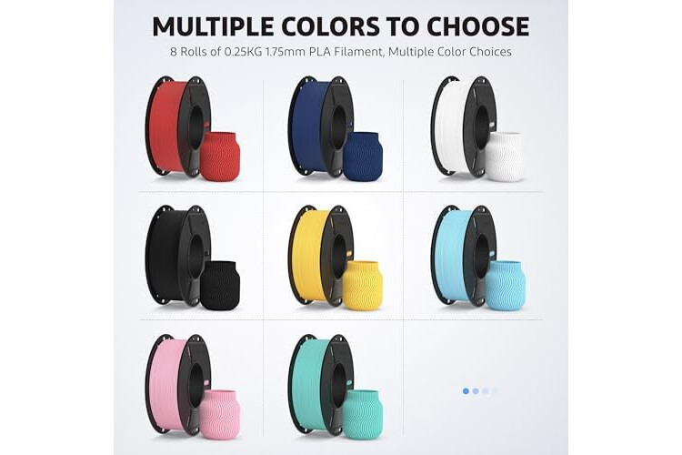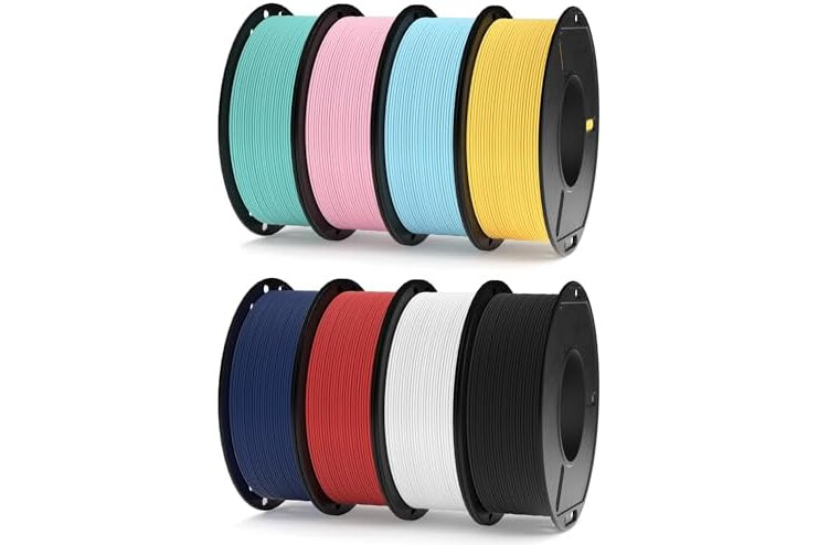 8-COLOR VARIETY PACK: Includes 8 pcs different colors matte PLA filaments, each spool is 250g, 2kg in total: black, white, ruby red, navy blue, mint green, lavender purple, sakura pink, sunshine yellow