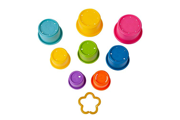 Bath Baby Sensory Toys: Each of the cups in this set of colorful stacking toys are easy to clean and made without BPA for toddlers and kids ages 9 months and up