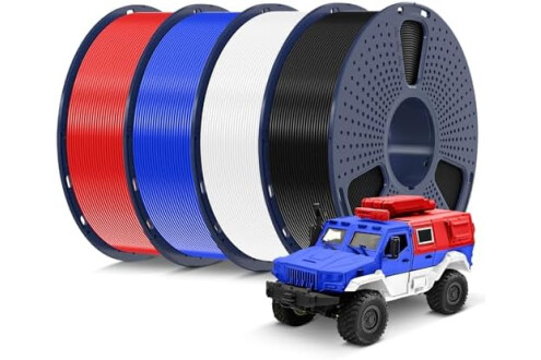 SUNLU 4kg PLA 3D Printer Filament Bundle Multicolor, Neatly Wound PLA Filament 1.75mm ±0.02mm, Individually Vacuum Packed, 4kg in Total, 1kg per Spool, 4 Pack, 4000g PLA, Black+White+Blue+Red