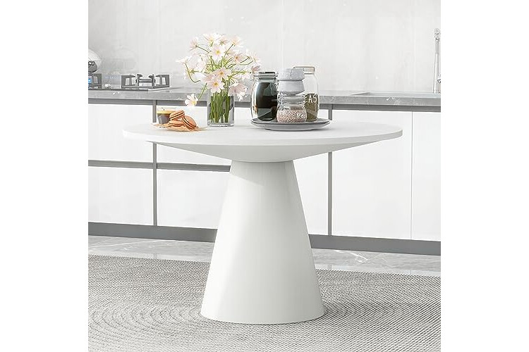 46.5" Modern Round Dining Table for 4-6,Wooden Round Kitchen Table with MDF Table Top & Pedestal Base,Mid Century Modern Dining Table for Dining Room Kitchen,Living Room, Creamy White