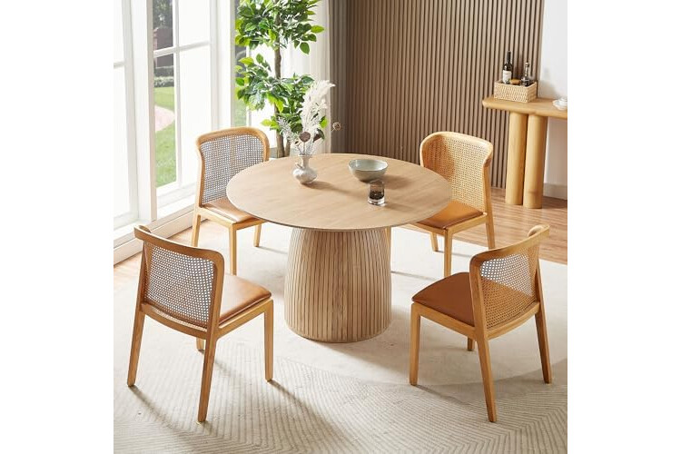 47" Round Dining Table for 4-6 People, Modern Dining Room Table with MDF Table Top & Pedestal Base for Kitchen, Restaurant, Café, Oak