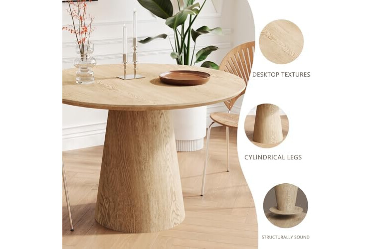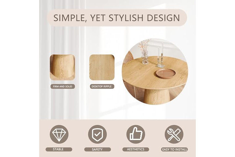 Excellent Quality: The desktop is made of MDF, and the wooden texture on the surface highlights the texture. The table frame is made of rubber solid wood to ensure stability and durability. The pedestal base provides better support.
