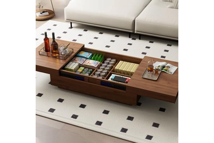 Multi-Functional Storage:This coffee table offers hidden and open compartments, providing ample space to organize books, remote controls, and decor while maintaining a clutter-free living area.