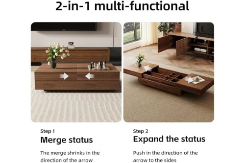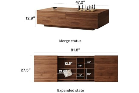 Optimal Size for Versatile Use: Measuring 47.2 inches when combined and extending to 81.8 inches in length with a height of 27.5 inches, this coffee table is ideal for various spaces, including living rooms, studies, and bedrooms, ...