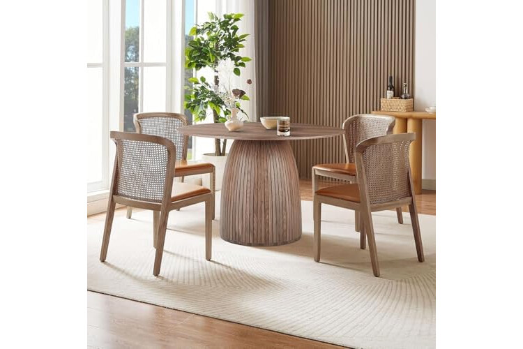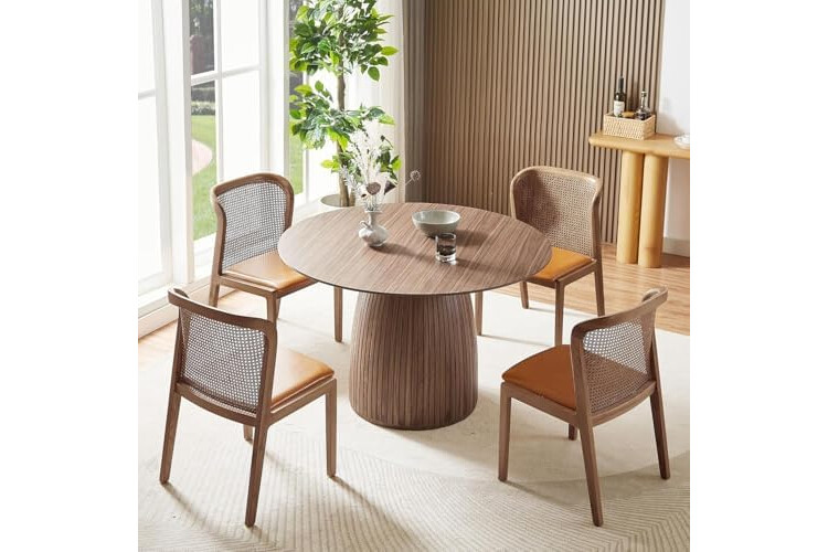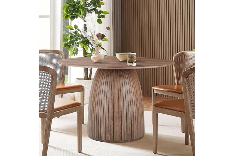 47" Round Dining Table for 4-6 People, Modern Dining Room Table with MDF Table Top & Pedese Cofee Table for Kitchen, Restaurant, Café, Walnut