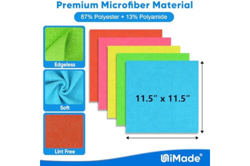 Powerful Cleaning: Unimade commercial grade microfiber cleaning cloths boast exceptional cleaning power, tackling messes with ease. From spills to stains, they deliver a thorough clean every time. Say goodbye to stubborn stains and spills with our shop towels