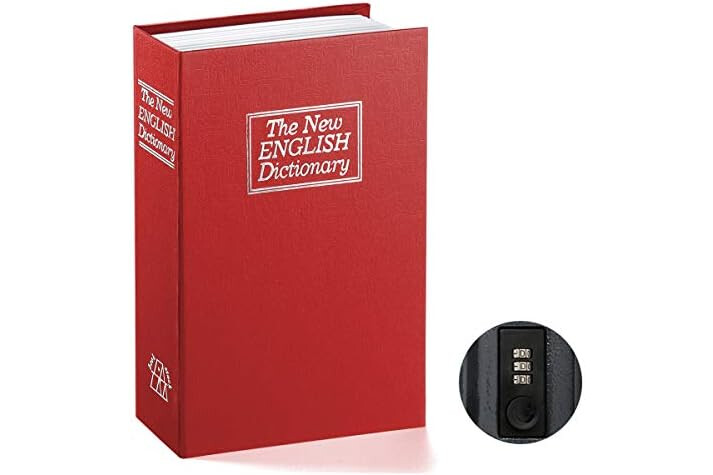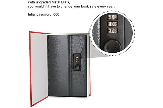 Book Safe with Combination Lock - Jssmst Home Dictionary Diversion Metal Safe Box for Home Office Code Lock Money Box High Capacity, 9.5 x 6.2 x 2.2 inch, SM-BS0404L, Red Large