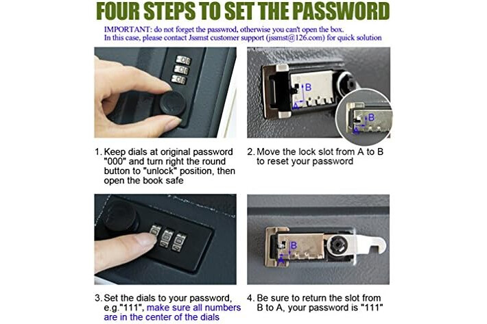 With Combination Lock: don’t worry about losing keys. If you’re not sure about setting up password or forget the password, Jssmst provides quick solutions