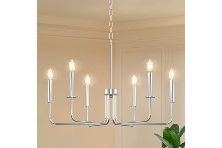 Farmhouse Chandelier, 6-Light Metal Hanging Ceiling Light Fixture for Dining Room, Kitchen Island, Living Room, Entryway, Foyer-Brushed Nickel