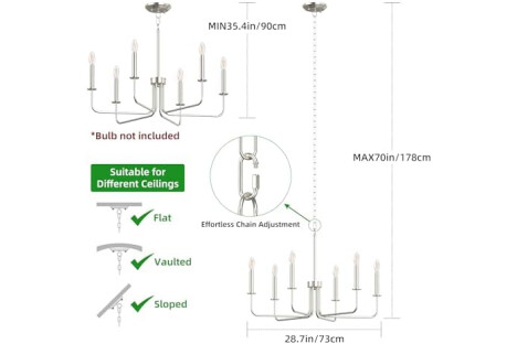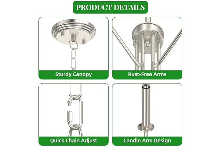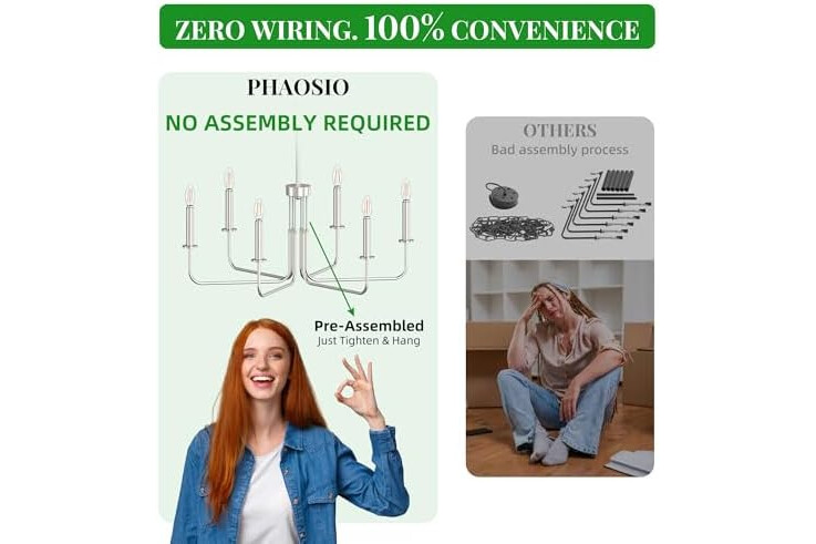 Pre-Assembled Arms & Easy Installation:The chandelier arms are pre-assembled, simply unfold them and complete the setup with included hardware and detailed instructions. This modern farmhouse chandelier saves installation time and effort, making it beginner-friendly for a quick DIY project.