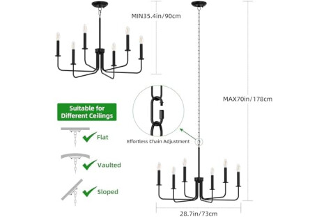 Upgraded Wide Arms & Classic Farmhouse Design:This Phaosio 6-Light chandelier comes with widened and reinforced arms for improved stability. The elegant candle-style design blends farmhouse and industrial aesthetics, creating a stunning ceiling light fixture for dining room, kitchen, entryway, foyer, or living room.