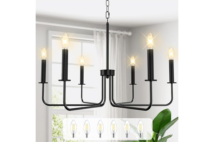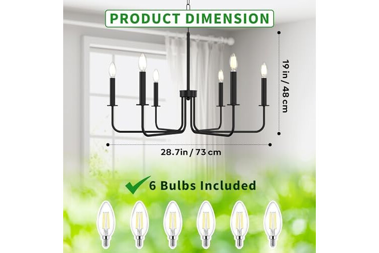 Includes 6 E12 Candelabra Bulbs:Unlike many chandeliers sold without bulbs, this farmhouse chandelier comes with 6 E12 candelabra bulbs included, saving you time and extra cost. Simply install and enjoy bright and warm lighting immediately after setup.