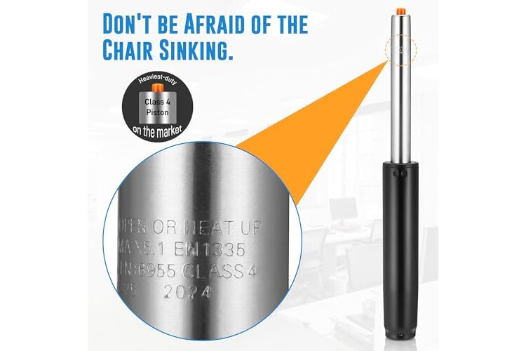 【Certified Safety & Quality】Our office chair gas cylinder is Class 4 rated, the highest safety standard for chair cylinders. It has passed rigorous SGS testing and is certified by TÜV and BIFMA, ensuring explosion-proof performance and rust resistance. This means you can trust it to deliver long-lasting safety and performance, even with daily heavy use.