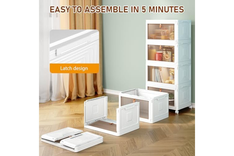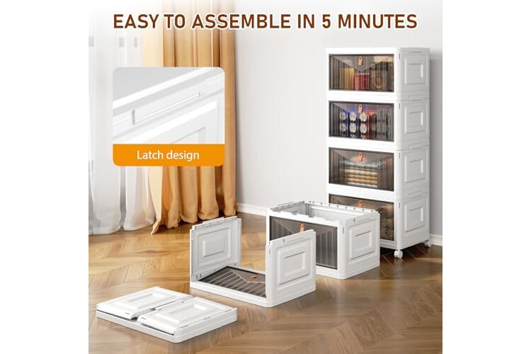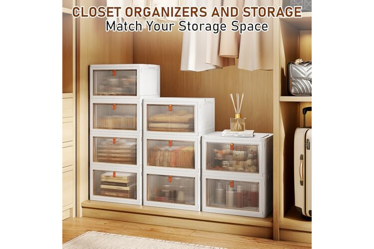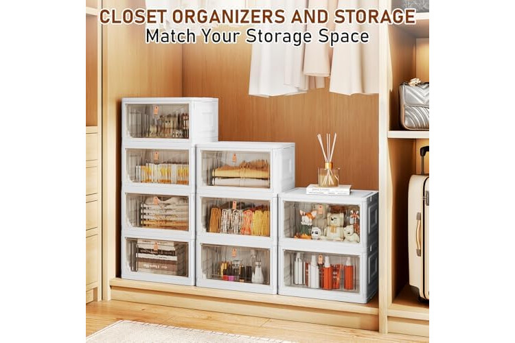 Easy to Use and Foldable - The plastic storage bins are easy to assemble without tools, you can stack storage boxes and assemble them into a bedding organization, clothes organizer or shoe storage cabinet etc. When not in use, the storage boxes can be folded to take up little space in your home or cars