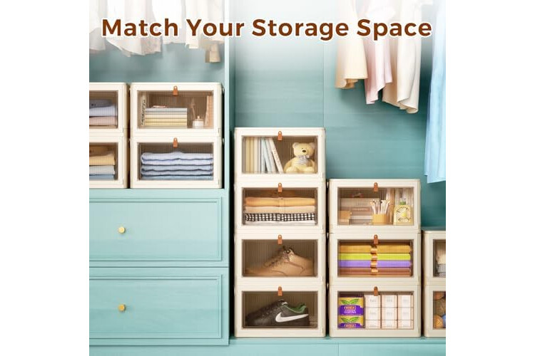Easy to Use and Foldable - The plastic storage bins are easy to assemble without tools, you can stack storage boxes and assemble them into a bedding organization, clothes organizer or shoe storage cabinet etc. When not in use, the storage boxes can be folded to take up little space in your home or cars