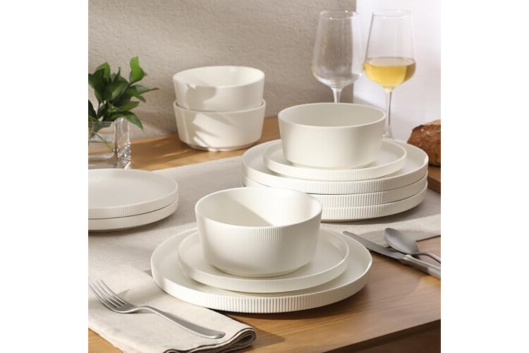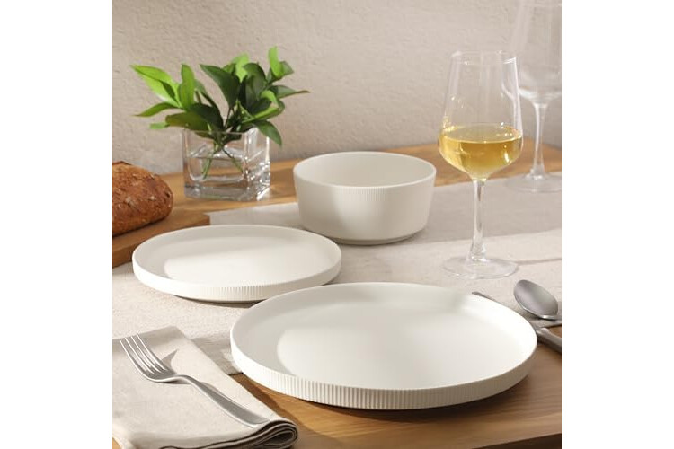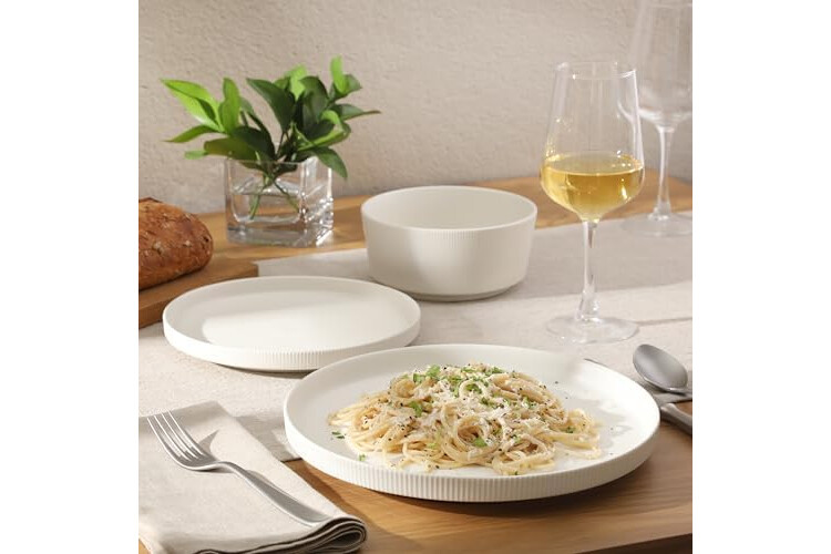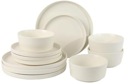 FOUR PLACE SETTINGS: This complete dinnerware set includes four 10.5-inch dinner plates, four 8-inch dessert plates and four 6-inch cereal bowls. Suitable for a service for four to serve small breakfasts, quick lunches or gourmet dinners all year round.
