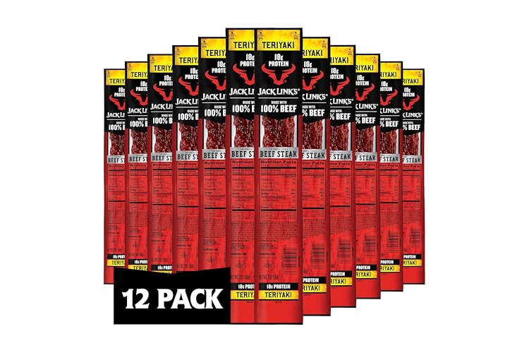 Jack Link's Teriyaki Beef Jerky Steaks - Ready to Eat Real Meat Protein Snacks - 18g Protein per Serving - Made with 100% Real Beef - (12 Pack) 2 oz Meat Snacks