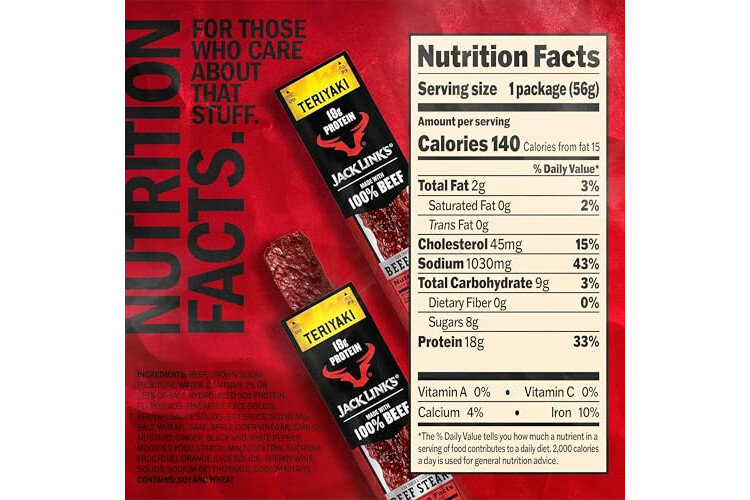 GOOD SOURCE OF PROTEIN: Jack Link's Teriyaki Beef Steaks deliver 18g of protein per serving; A tasty meat snack to help you power through your school or work day