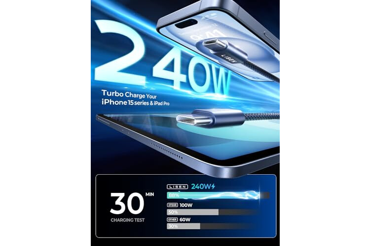 [For APPLE E-MARKER SMART CHIP] LISEN 240W iPhone 17 charger 10ft usb c cable is build in the original power delivery E-Mark chip, which supports USB PD fast charging and provides comprehensive protection to devices battery and adapters, keep you in light-speed charging and safe;