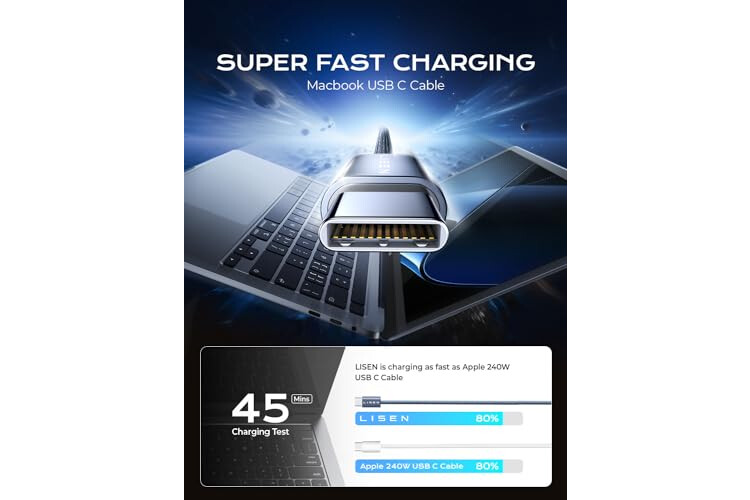 [240W SUPER FAST CHARGING] This 10ft usb c cable fast charging supports PD 3.0 and QC 3.0 fast charging, it charges your macbook pro and new iPhone 17/17 Pro/iPhone 17 Pro Max as fast as Apple official 240W cable; Fast charging gives you a quick and convenient way to recharge your devices up to 80 percent in 30 minutes, and data transfer speeds up to 480Mbps (1200 songs synced per minute).