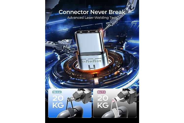 [AMAZING DURABILITY] Reinforced braided usb c cable, Lasts 30x longer than ordinary cables-proven in a laboratory environment to withstand 40,000 bends. It built-in laser welding technology, which ensure the metal part won't break. One of the toughest cables ever created, with tensile strength capable of withstanding 175 lbs
