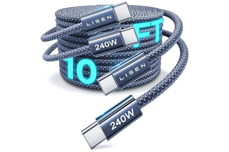 LISEN 240W Type C Charger Fast Charging Cable [10ft, 2-Pack] Long USB C Cable Fast Charging Cords 10 Foot C to C Cable Fast Charging Computer Security Cables for iPhone 17/16 Series, MacBook Pro Air