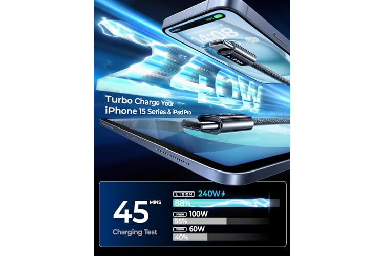 [For APPLE E-MARKER SMART CHIP] LISEN 240W iPhone 17 charger 10ft usb c cable is build in the original power delivery E-Mark chip, which supports USB PD fast charging and provides comprehensive protection to devices battery and adapters, keep you in light-speed charging and safe;
