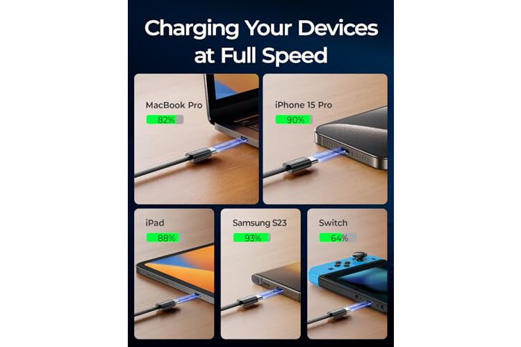 [240W SUPER FAST CHARGING] This 10ft usb c cable fast charging supports PD 3.0 and QC 3.0 fast charging, it charges your macbook pro and new iPhone 17/17 Pro/iPhone 17 Pro Max as fast as Apple official 240W cable; Fast charging gives you a quick and convenient way to recharge your devices up to 80 percent in 30 minutes, and data transfer speeds up to 480Mbps (1200 songs synced per minute).